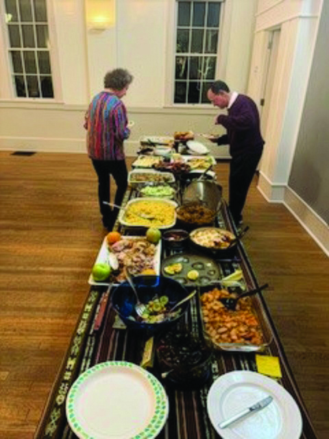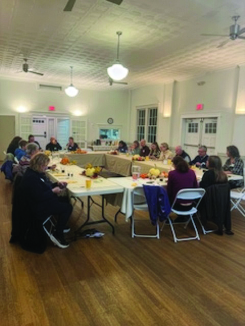Lyon Park Community Center Board of Governors Chair David Newman and his wife, Sara, hosted the Community Center’s first community Thanksgiving potluck dinner, inviting our neighbors in Lyon Park and Ashton Heights. Two dozen celebrants came together, decorating the space, bringing their favorite dishes, and filling the room with warmth, laughter, and generosity. The group included all ages, creating a welcoming and inclusive atmosphere. The hosts provided turkey, stuffing, gravy, and drinks, while guests brought a delicious array of family favorites, including some Ukrainian dishes! With seating arranged around a large rectangle of joined tables, everyone was together.