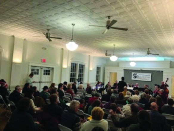 The sweet sounds of vibrating strings floated through the hall and over a full house, as the Mandoleers enchanted our community with a free evening concert at the Lyon Park Community Center on Tuesday December 2. The Mandoleers, a mandolin and guitar orchestra based in Arlington, was founded in 1923 in Takoma, Maryland, and is the longest continuously operating mandolin orchestra in the United States. Their holiday concert included classical and semi-classical works, folk, contemporary pieces, and festive sing-alongs that had the audience joyfully joining in. And if the music weren’t sweet enough, the dessert table, dressed with a wide selection of delectables brought by audience members, put the evening far over the top! Nothing could better convey how much people enjoyed the concert than the thunderous applause after the encore. We are grateful for the Mandoleiers donating their time and talent to perform for us! For more information about the Mandoleers visit their website at http://www.mandoleers.org.