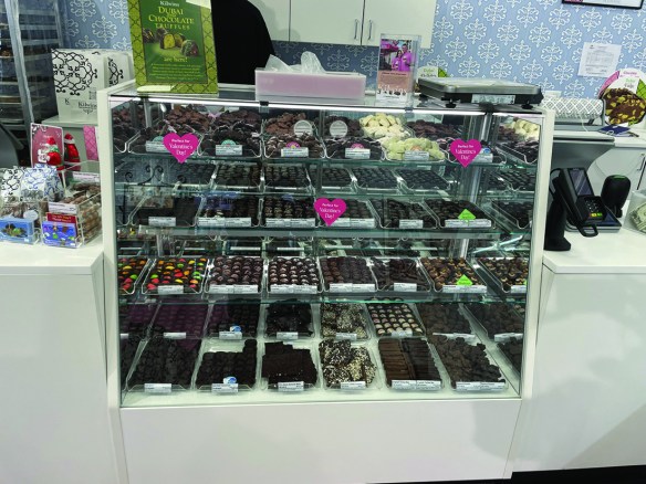 Wissam is the Assistant Manager. She will welcome you kindly (and recognize you, if, like my friend who joined me, you’ve been there before) and offer tastes of fudge and ice cream. The Kilwins® Tracks is amazing (creamy vanilla ice cream with chocolate covered peanut butter truffles and swirls of fudge)—and ice cream isn’t usually my passion. The Dubai-Style chocolate fudge was being prepared on-the-spot when we arrived and is a specialty of the brand. The peanut butter fudge was tasty and the peppermint fudge tasted, my friend said, “like a melted candy cane.”