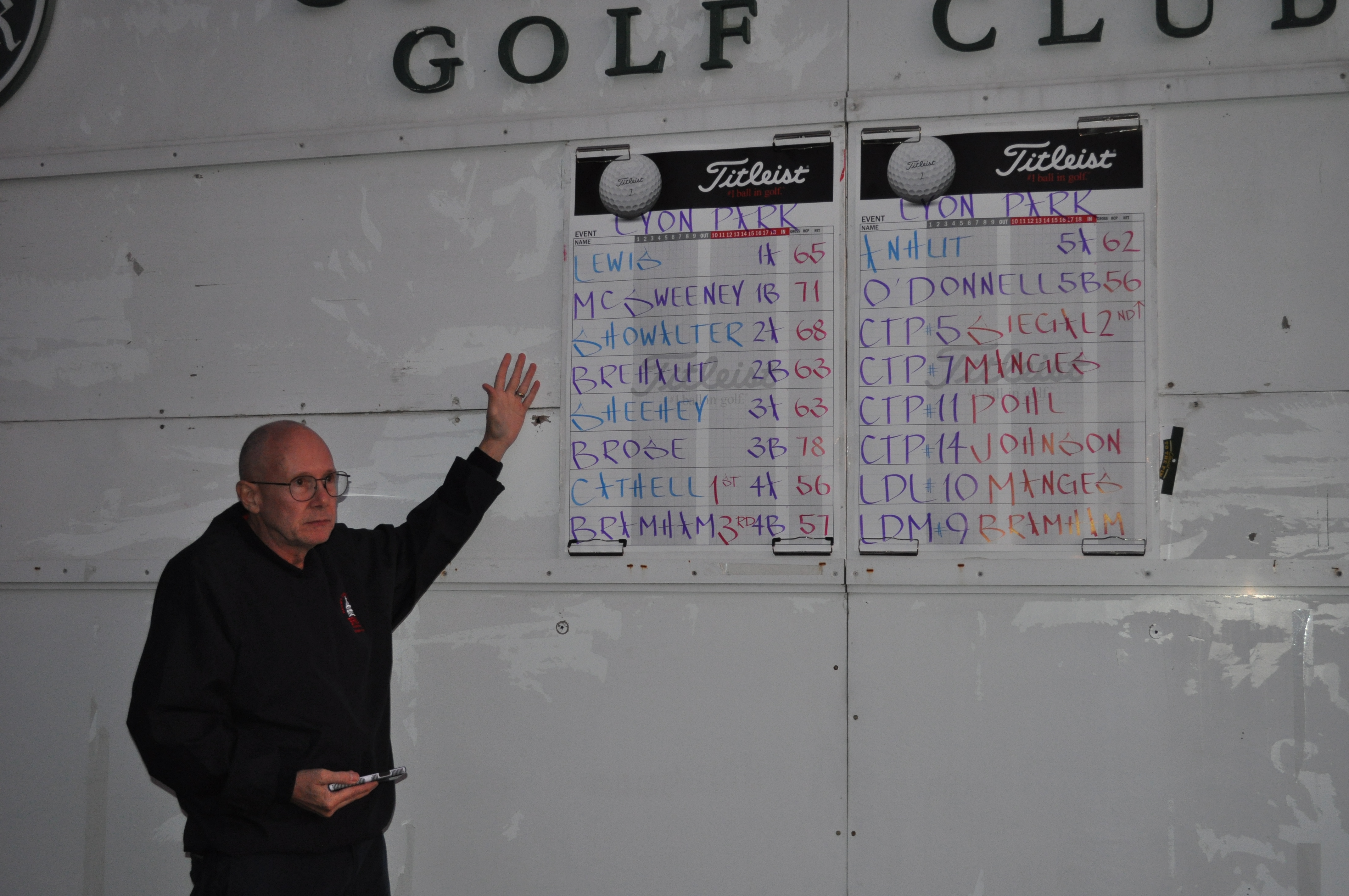 Individual prizes of $50 gift certificates donated by our sponsors were awarded to closest to pin and long drive winners, Ellen Manges (twice!) Al Johnson, Greg Bramham, Mike Pohl and Gregg Siegal. Tracey Switzer won the Putt-off (and two dozen Pro V1x golf balls) by sinking her 35 foot putt before everyone else.