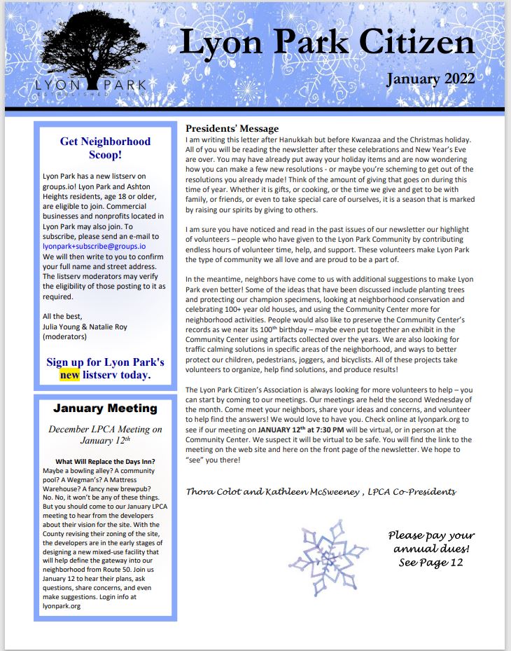 Lyon Park Newsletters