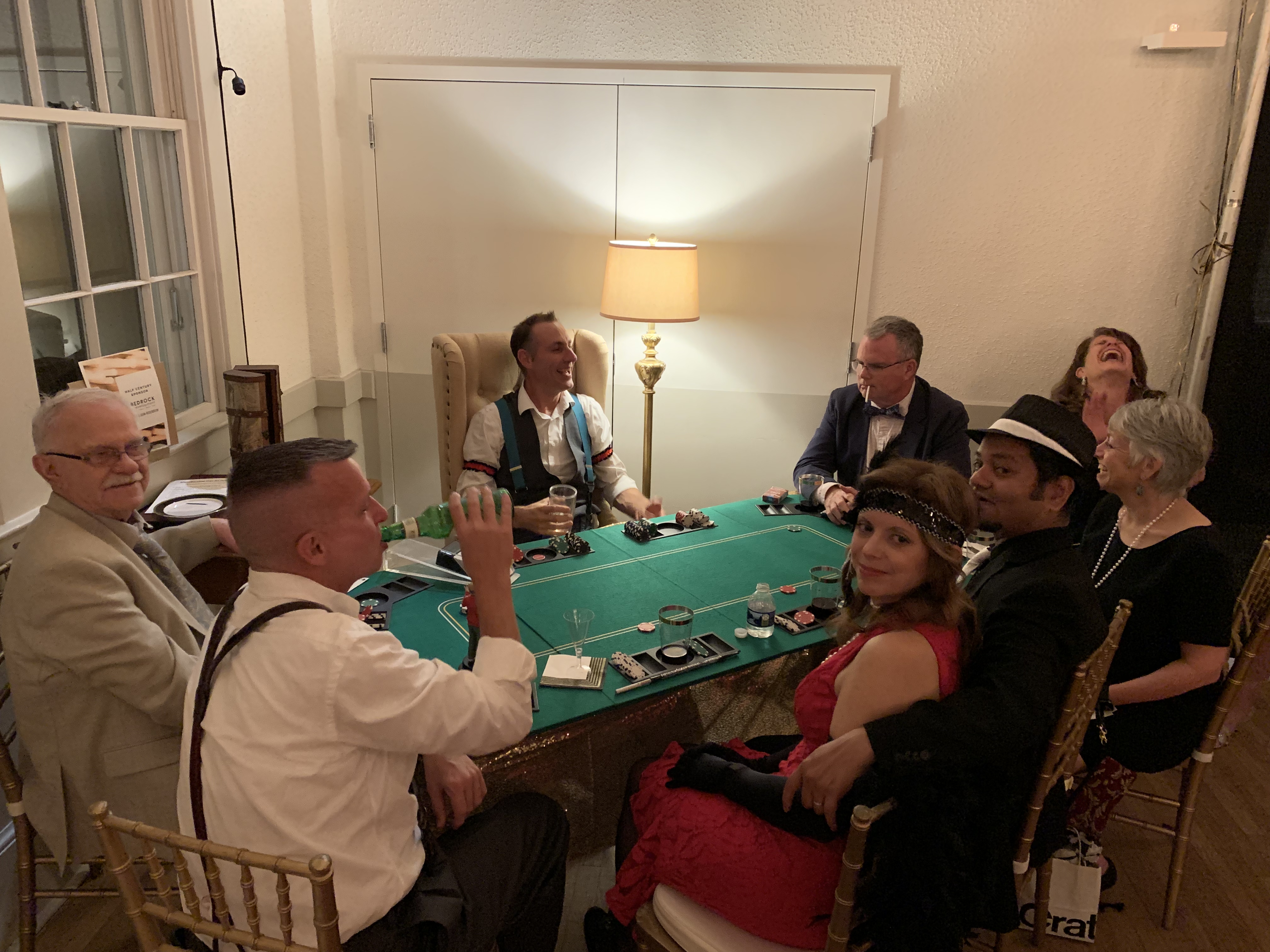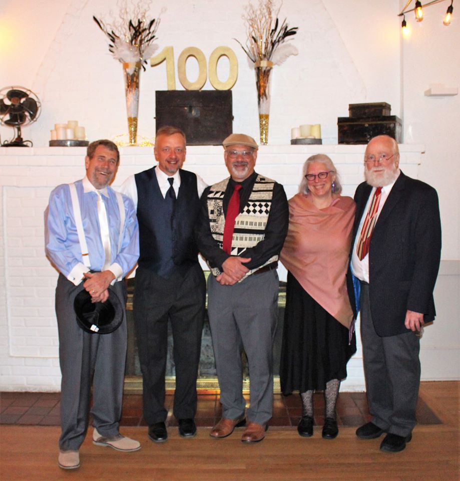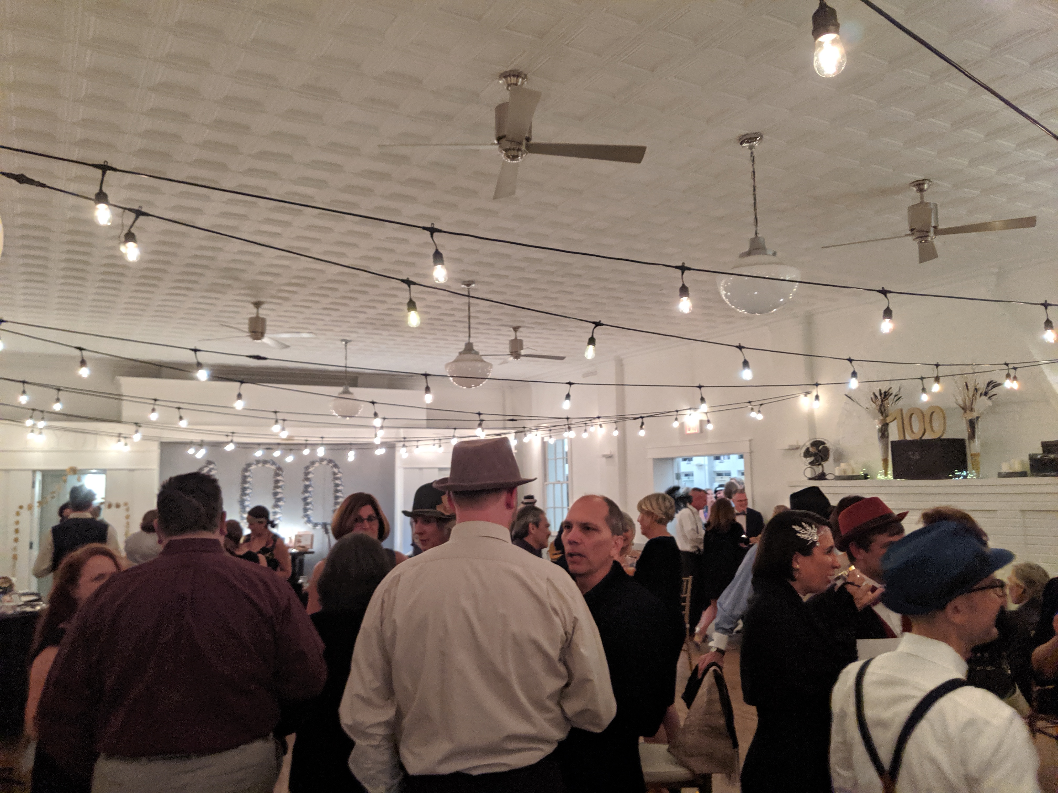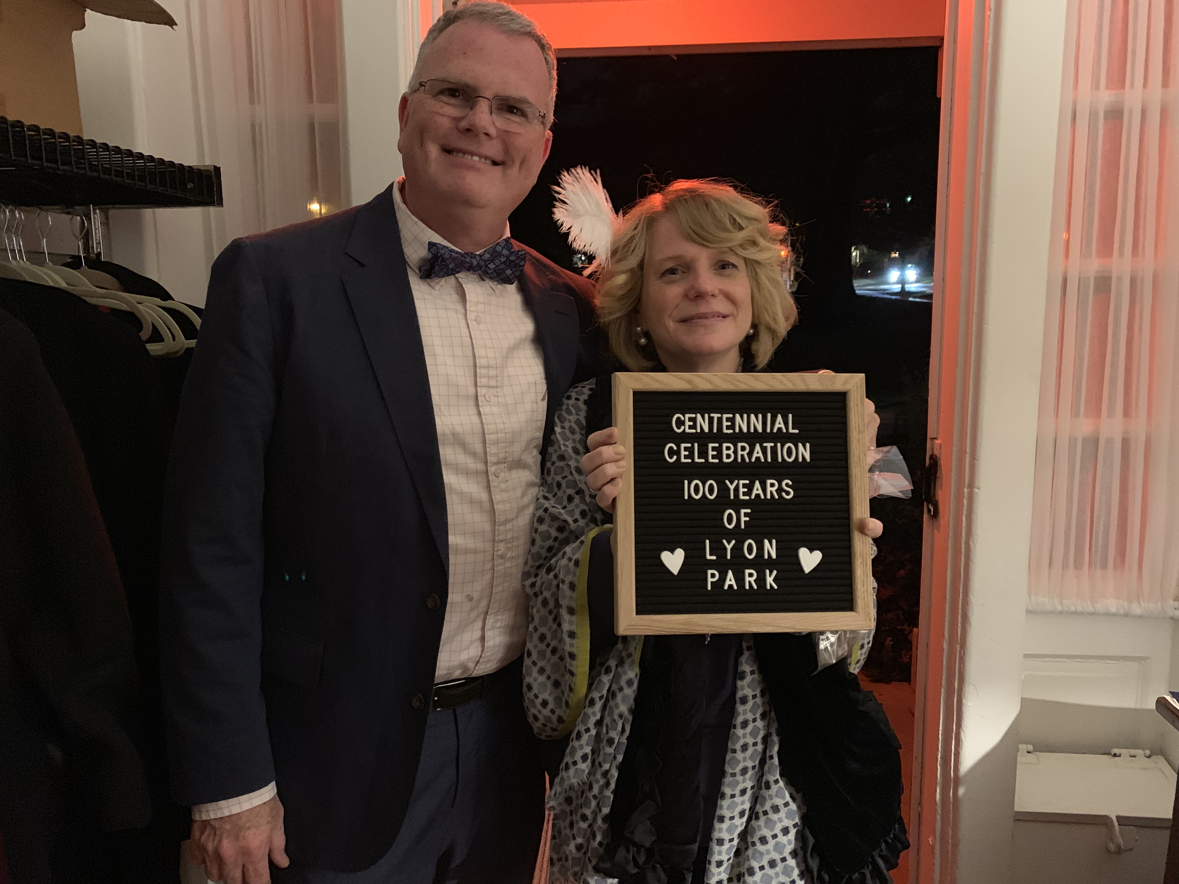 Flappers, gangsters, sophisticated ladies and cardsharps had a roaring good time at the Speakeasy Night to Remember on Saturday, Oct. 19, part of the Lyon Park Centennial Weekend. Guests celebrated 100 years of Lyon Park by feasting, playing blackjack and trivia, enjoying music by the band First Street North, and having fun with friends. Later, a Ceremonial Burning of the Mortgage was held outside and a champagne toast was raised to Lyon Park.